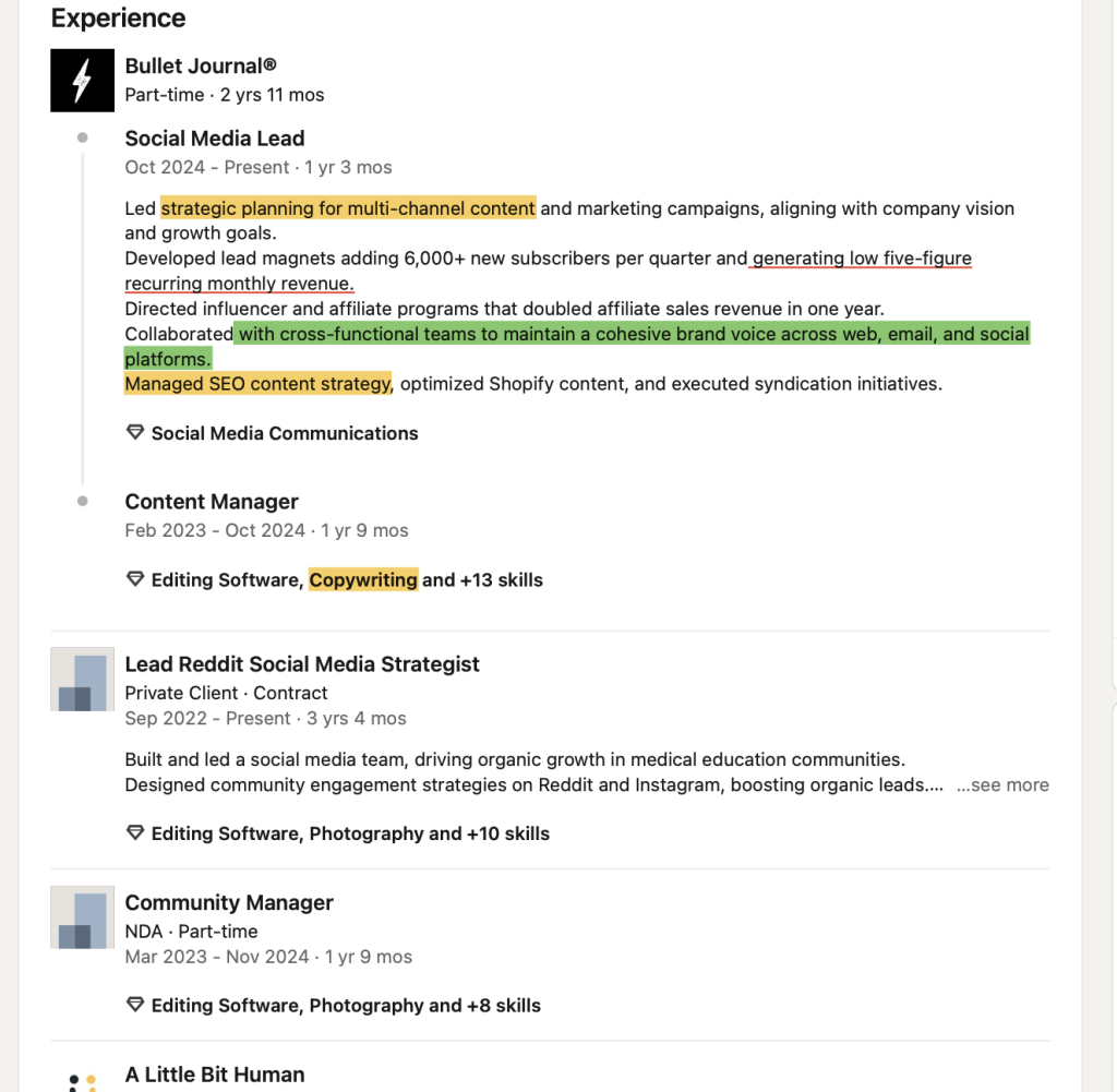 (Was SEO doing so well at this time? content manager must have done so well to now be social media lead.)